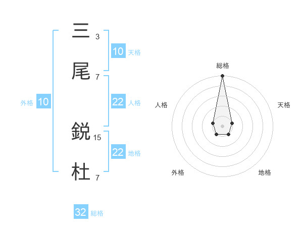 三尾 鋭杜さんを姓名の画数から五運を鑑定