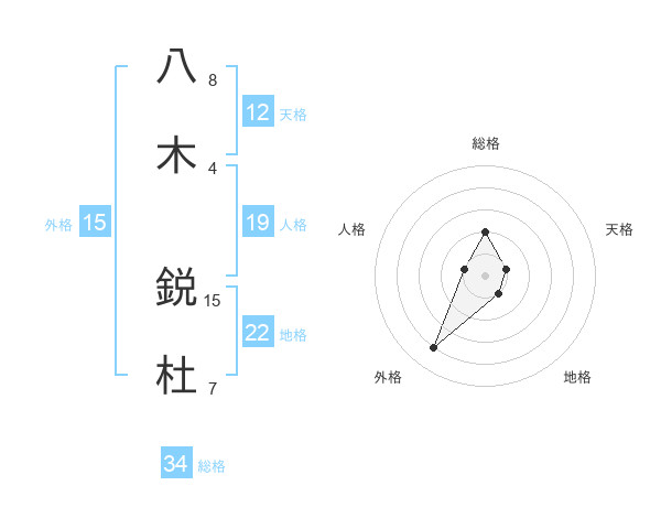 八木 鋭杜さんを姓名の画数から五運を鑑定