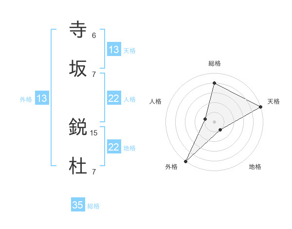 寺坂 鋭杜さんの外格は13画の5点!