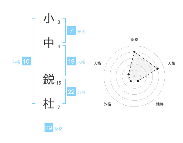 小中 鋭杜さんの総格は29画の4点!