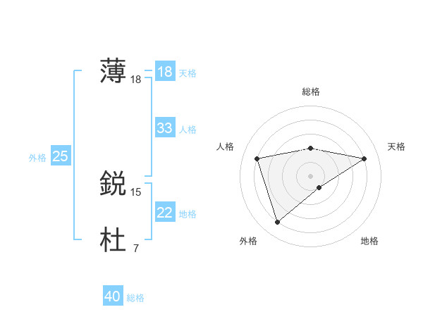 薄 鋭杜さんの総格は40画の2点!