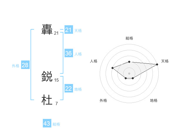 轟 鋭杜さんを姓名の画数から五運を鑑定