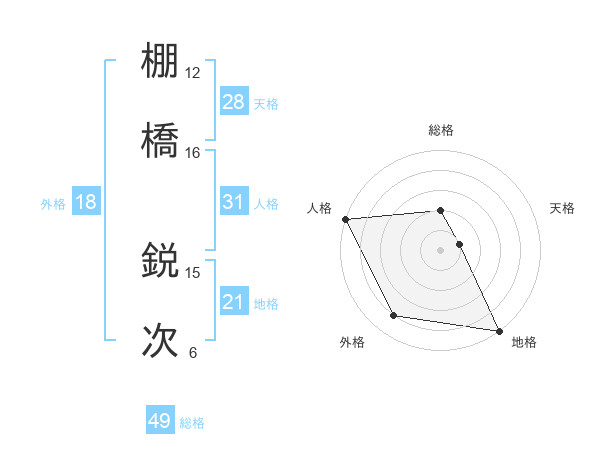 棚橋 鋭次さんを姓名の画数から五運を鑑定