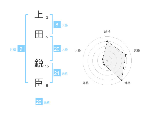 上田 鋭臣さんの天格は8画の4点!