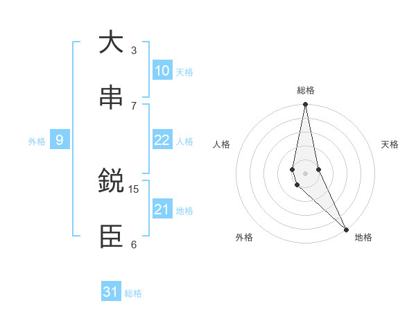 大串 鋭臣さんの総格は31画の5点!