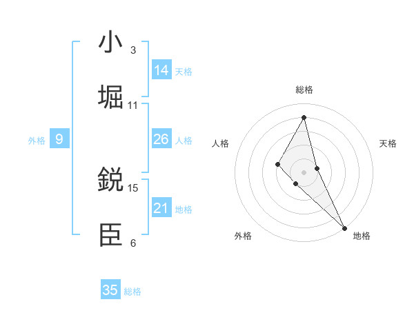 小堀 鋭臣さんを姓名の画数から五運を鑑定