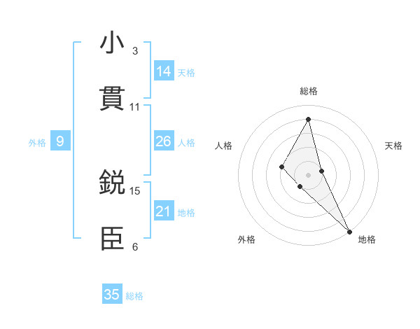 小貫 鋭臣さんを姓名の画数から五運を鑑定