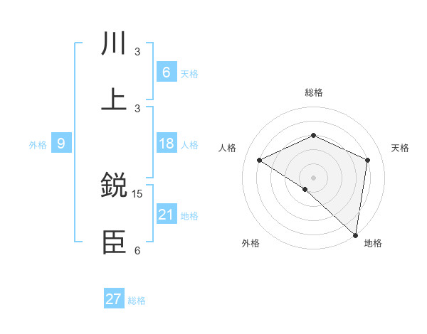 川上 鋭臣さんを姓名の画数から五運を鑑定