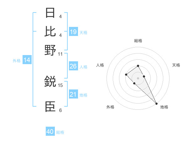 日比野 鋭臣さんを姓名の画数から五運を鑑定