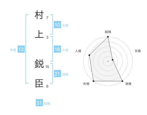 村上 鋭臣さんを姓名の画数から五運を鑑定
