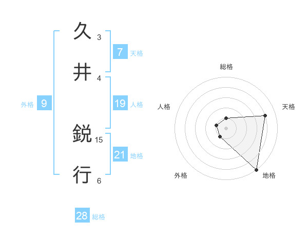 久井 鋭行さんの天格は7画の4点!