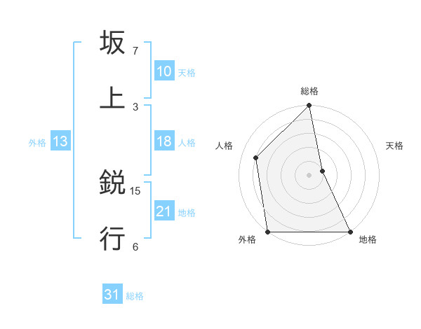 坂上 鋭行さんの外格は13画の5点!