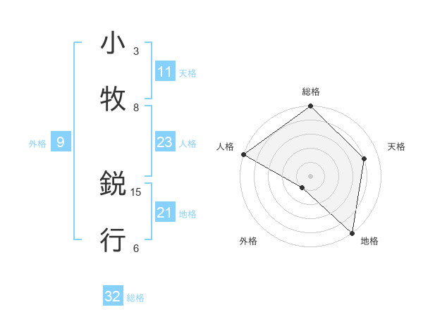 小牧 鋭行さんの天格は11画の4点!