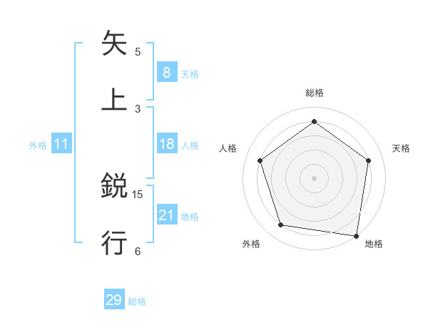 矢上 鋭行さんの総格は29画の4点!