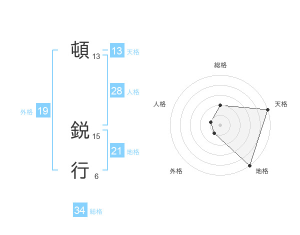 頓 鋭行さんの総格は34画の2点!