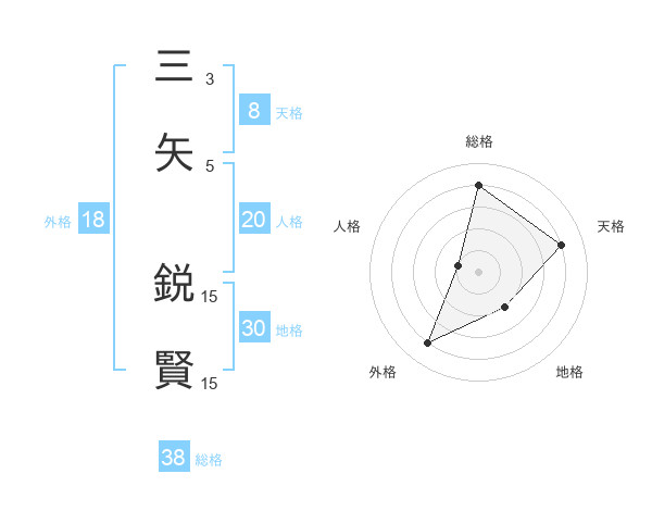 三矢 鋭賢さんを姓名の画数から五運を鑑定