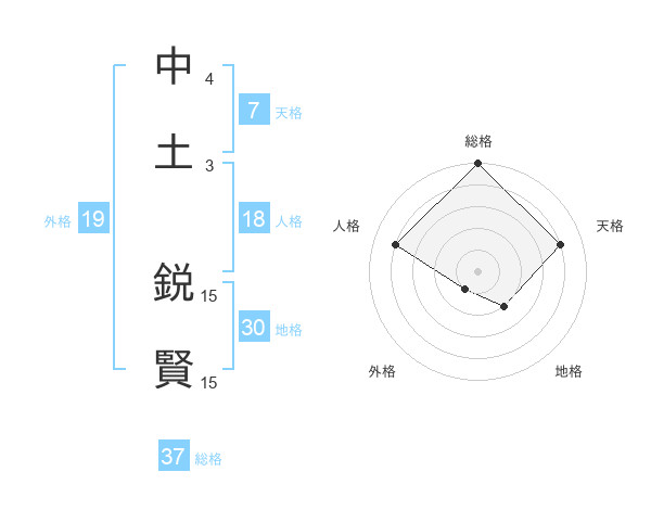 中土 鋭賢さんの総格は37画の5点!