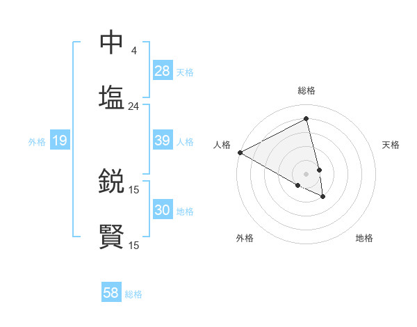 中塩 鋭賢さんを姓名の画数から五運を鑑定