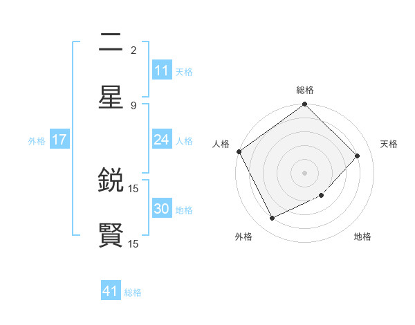 二星 鋭賢さんを姓名の画数から五運を鑑定