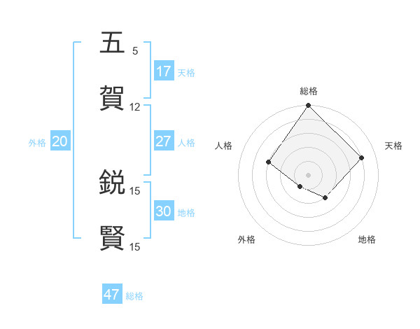 五賀 鋭賢さんを姓名の画数から五運を鑑定