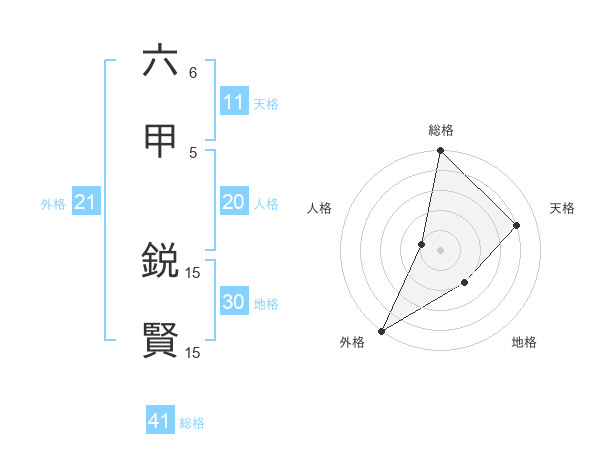 六甲 鋭賢さんを姓名の画数から五運を鑑定