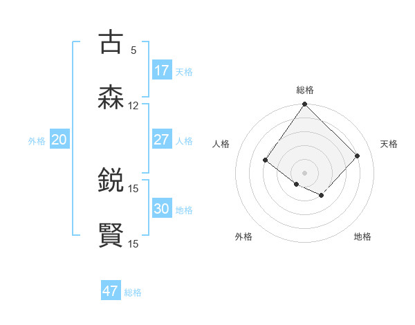 古森 鋭賢さんの総格は47画の5点!