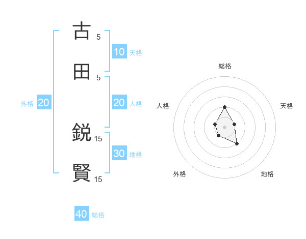 古田 鋭賢さんを姓名の画数から五運を鑑定
