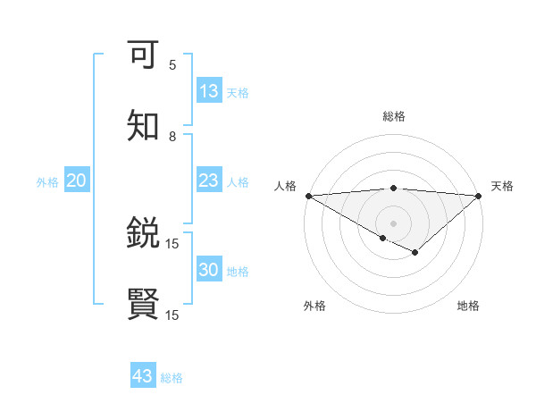 可知 鋭賢さんの総格は43画の2点!