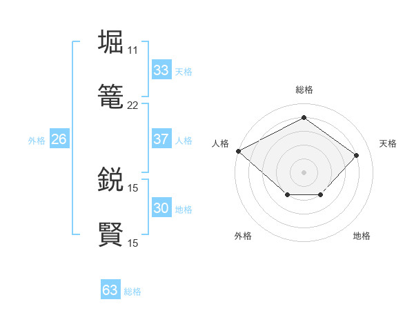 堀篭 鋭賢さんの総格は63画の4点!