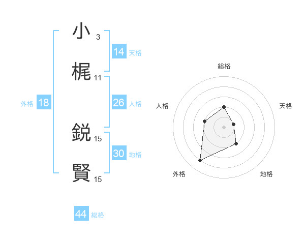 小梶 鋭賢さんの天格は14画の1点!