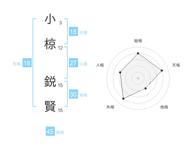 小椋 鋭賢さんの総格は45画の4点!
