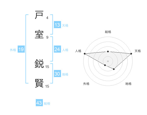 戸室 鋭賢さんの総格は43画の2点!