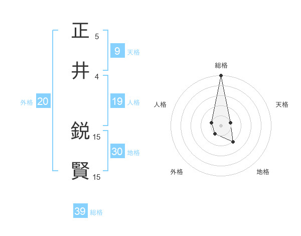 正井 鋭賢さんの総格は39画の5点!