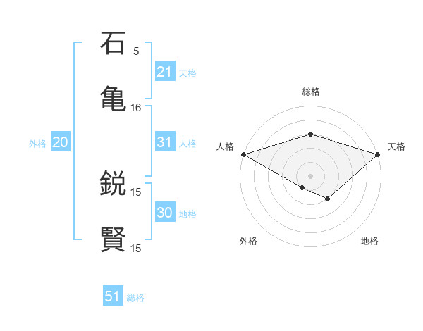 石亀 鋭賢さんの総格は51画の3点!