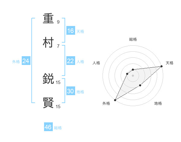 重村 鋭賢さんの外格は24画の5点!