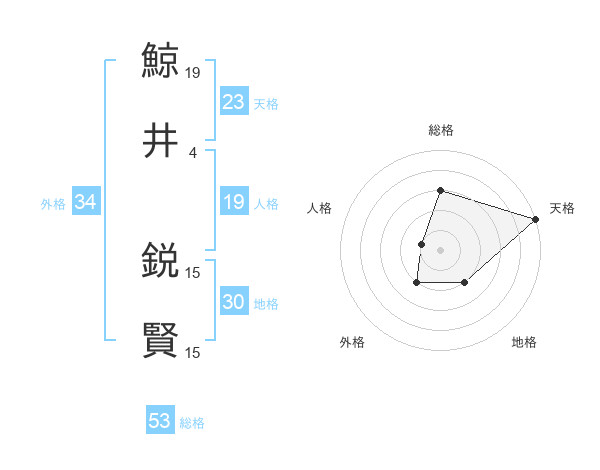 鯨井 鋭賢さんの天格は23画の5点!