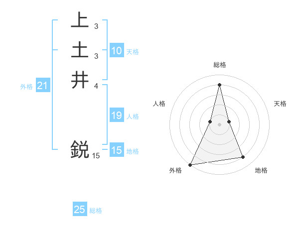 上土井 鋭さんの総格は25画の4点!