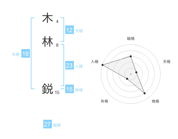 木林 鋭さんの総格は27画の3点!