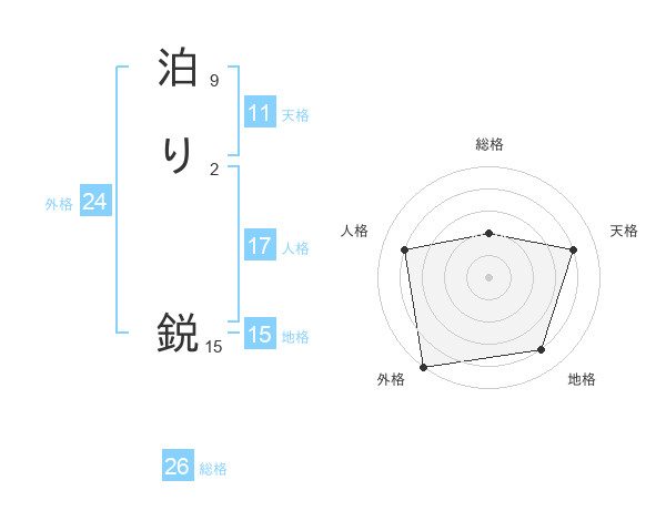 泊り 鋭さんを姓名の画数から五運を鑑定