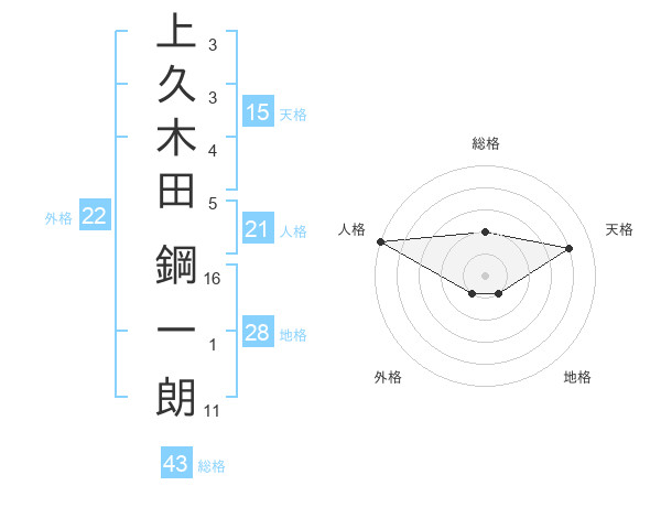 上久木田 鋼一朗さんを姓名の画数から五運を鑑定