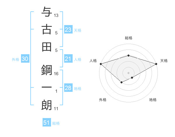 与古田 鋼一朗さんを姓名の画数から五運を鑑定