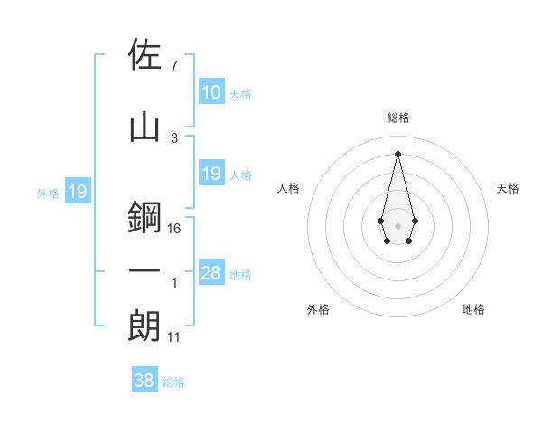 佐山 鋼一朗さんを姓名の画数から五運を鑑定