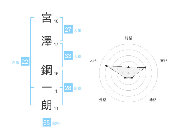 宮澤 鋼一朗さんを姓名の画数から五運を鑑定