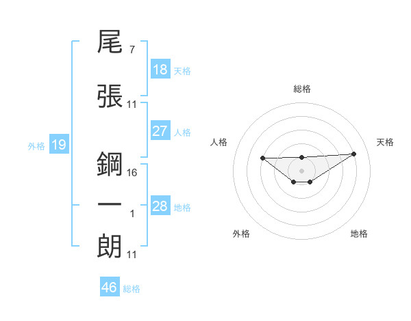 尾張 鋼一朗さんを姓名の画数から五運を鑑定