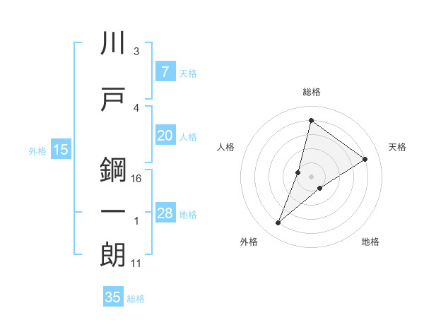川戸 鋼一朗さんを姓名の画数から五運を鑑定