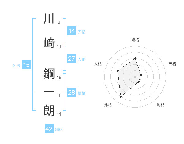 川﨑 鋼一朗さんを姓名の画数から五運を鑑定