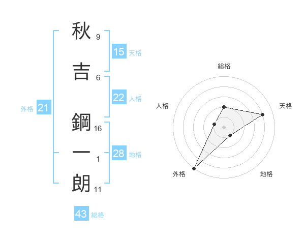 秋吉 鋼一朗さんを姓名の画数から五運を鑑定