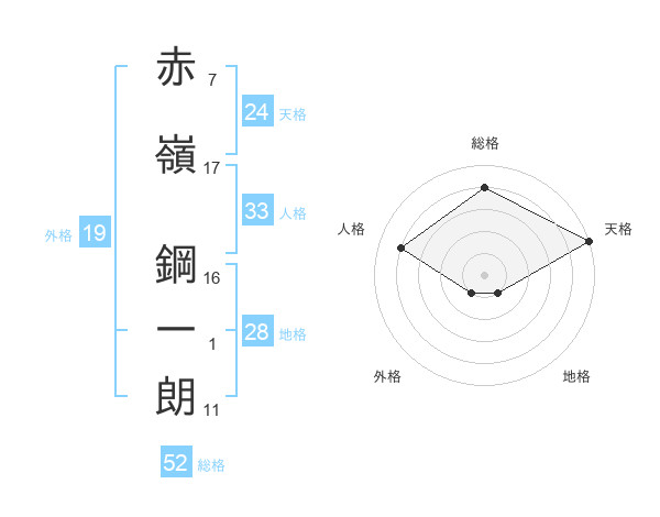 赤嶺 鋼一朗さんの総格は52画の4点!