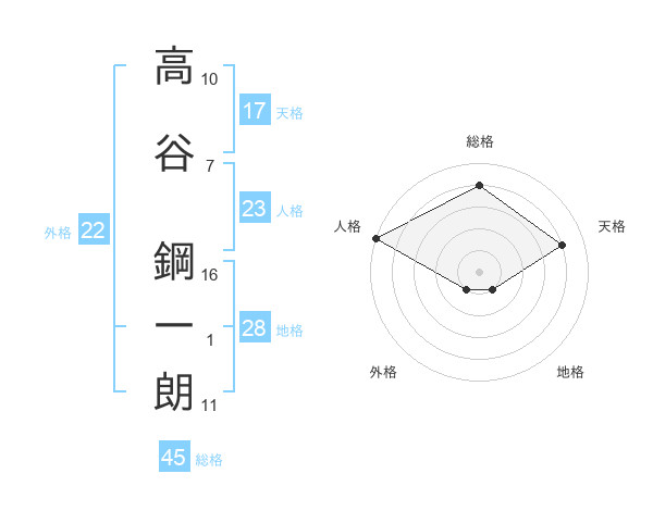 高谷 鋼一朗さんを姓名の画数から五運を鑑定