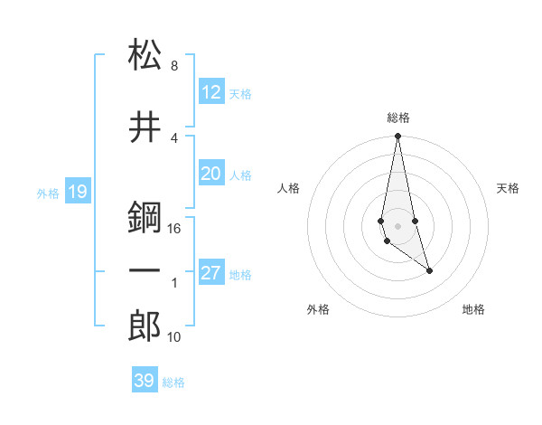 松井 鋼一郎さんを姓名の画数から五運を鑑定